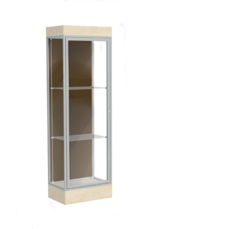 Edge Lighted Floor Display Case, 6" Beigewood Base w/ Chocolate Back and Satin Natural Aluminum Frame, 76"H x 24"W x 20"D (Item #: 91lfco-sn-cd-WD)