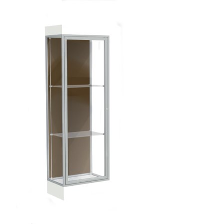 Edge Lighted Floor Display Case, 6" Frosty White Base w/ Chocolate Back and Satin Natural Aluminum Frame, 76"H x 24"W x 20"D (Item #: 91lfco-sn-fw-WD)
