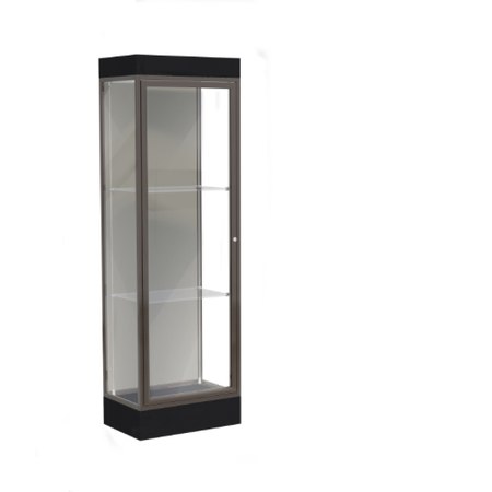 Edge Lighted Floor Display Case, 6" Black Base w/ Harbor Back and Dark Bronze Aluminum Frame, 76"H x 24"W x 20"D (Item #: 91lfhb-bz-bk-WD)