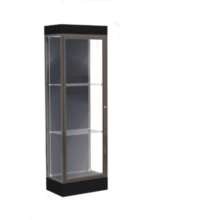 Edge Lighted Floor Display Case, 6" Black Base w/ Slate Back and Dark Bronze Aluminum Frame, 76"H x 24"W x 20"D (Item #: 91lfsl-bz-bk-WD)