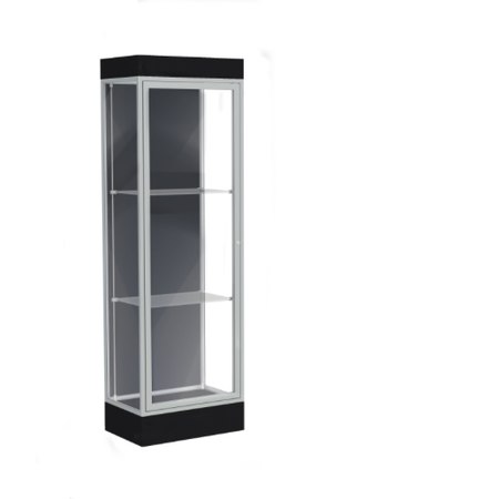 Edge Lighted Floor Display Case, 6" Black Base w/ Slate Back and Satin Natural Aluminum Frame, 76"H x 24"W x 20"D (Item #: 91lfsl-sn-bk-WD)