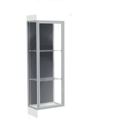 Edge Lighted Floor Display Case, 6" Frosty White Base w/ Slate Back and Satin Natural Aluminum Frame, 76"H x 24"W x 20"D (Item #: 91lfsl-sn-fw-WD)