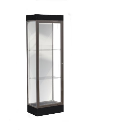 Edge Lighted Floor Display Case, 6" Black Base w/ White Back and Dark Bronze Aluminum Frame, 76"H x 24"W x 20"D (Item #: 91lfwh-bz-bk-WD)