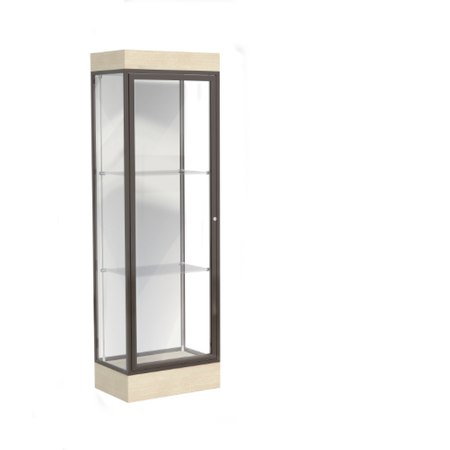 Edge Lighted Floor Display Case, 6" Beigewood Base w/ White Back and Dark Bronze Aluminum Frame, 76"H x 24"W x 20"D (Item #: 91lfwh-bz-cd-WD)