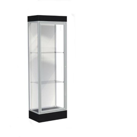 Edge Lighted Floor Display Case, 6" Black Base w/ White Back and Satin Natural Aluminum Frame, 76"H x 24"W x 20"D (Item #: 91lfwh-sn-bk-WD)