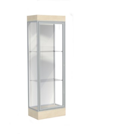 Edge Lighted Floor Display Case, 6" Beigewood Base w/ White Back and Satin Natural Aluminum Frame, 76"H x 24"W x 20"D (Item #: 91lfwh-sn-cd-WD)