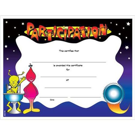These popular and brightly colored printed Participation Certificates are sure to be a hit with your students! Each measures 11 x 8 1/2 inches. Paper: Text Weight Certificate Paper. Outstanding for rewarding outstanding participation. Ships from: Columbia, South Carolina. SKU: 920-cs.