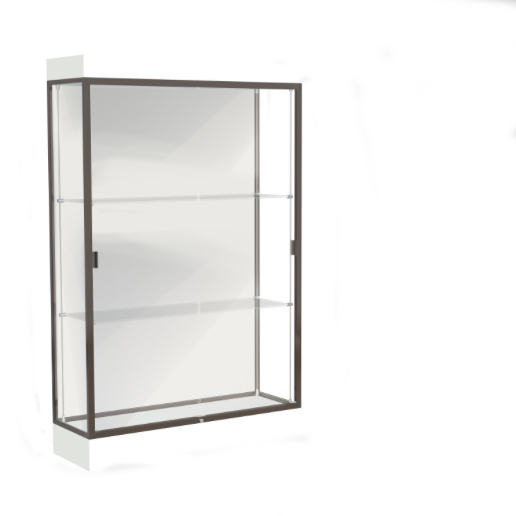 Edge Lighted Floor Display Case, 6" Frosty White Base w/ White Back and Dark Bronze Aluminum Frame, 76"H x 48"W x 20"D (Item #: 92lfwh-bz-fw-WD)