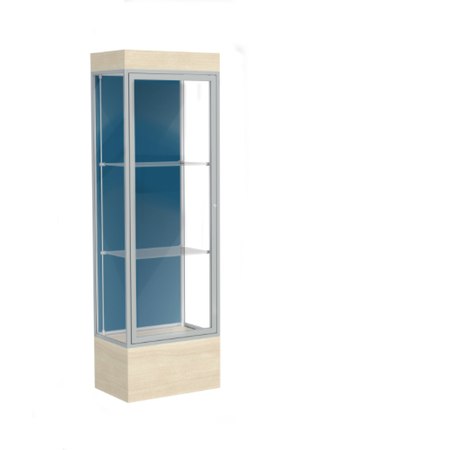 Edge Lighted Floor Display Case, 12" Beigewood Base w/ Blue Steel Back and Satin Natural Aluminum Frame, 76"H x 24"W x 20"D (Item #: 93lfbs-sn-cd-WD)