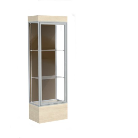 Edge Lighted Floor Display Case, 12" Beigewood Base w/ Chocolate Back and Satin Natural Aluminum Frame, 76"H x 24"W x 20"D (Item #: 93lfco-sn-cd-WD)
