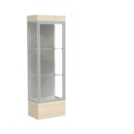 Edge Lighted Floor Display Case, 12" Beigewood Base w/ Harbor Back and Satin Natural Aluminum Frame, 76"H x 24"W x 20"D (Item #: 93lfhb-sn-cd-WD)