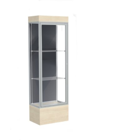 Edge Lighted Floor Display Case, 12" Beigewood Base w/ Slate Back and Satin Natural Aluminum Frame, 76"H x 24"W x 20"D (Item #: 93lfsl-sn-cd-WD)