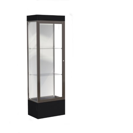 Edge Lighted Floor Display Case, 12" Black Base w/ White Back and Dark Bronze Aluminum Frame, 76"H x 24"W x 20"D (Item #: 93lfwh-bz-bk-WD)