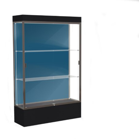 Edge Lighted Floor Display Case, 12" Black Base w/ Blue Steel Back and Dark Bronze Aluminum Frame, 76"H x 48"W x 20"D (Item #: 94lfbs-bz-bk-WD)