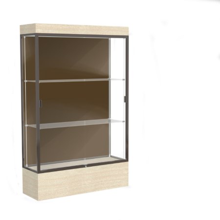 Edge Lighted Floor Display Case, 12" Beigewood Base w/ Chocolate Back and Dark Bronze Aluminum Frame, 76"H x 48"W x 20"D (Item #: 94lfco-bz-cd-WD)