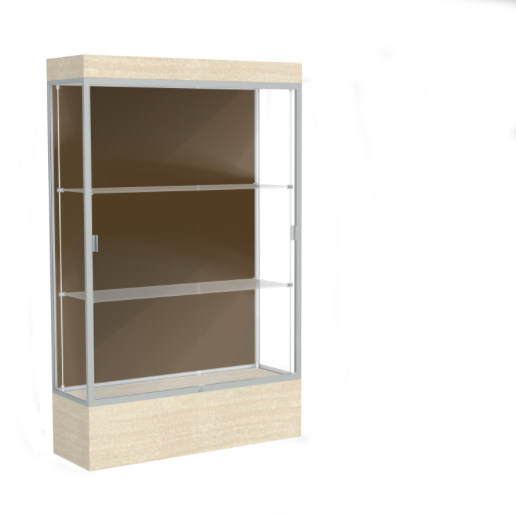 Edge Lighted Floor Display Case, 12" Beigewood Base w/ Chocolate Back and Satin Natural Aluminum Frame, 76"H x 48"W x 20"D (Item #: 94lfco-sn-cd-WD)