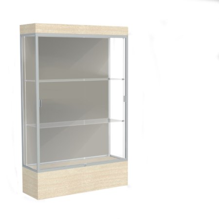 Edge Lighted Floor Display Case, 12" Beigewood Base w/ Harbor Back and Satin Natural Aluminum Frame, 76"H x 48"W x 20"D (Item #: 94lfhb-sn-cd-WD)