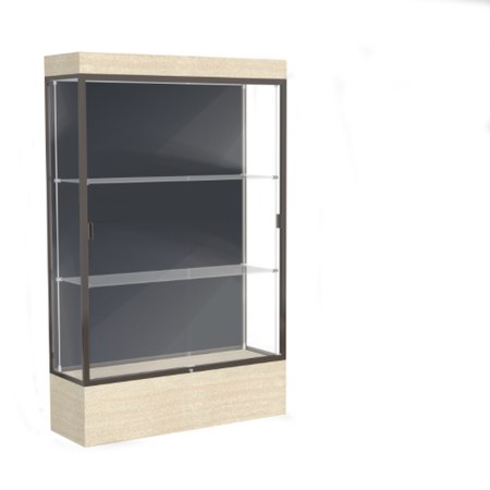 Edge Lighted Floor Display Case, 12" Beigewood Base w/ Slate Back and Dark Bronze Aluminum Frame, 76"H x 48"W x 20"D (Item #: 94lfsl-bz-cd-WD)