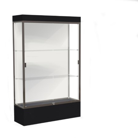 Edge Lighted Floor Display Case, 12" Black Base w/ White Back and Dark Bronze Aluminum Frame, 76"H x 48"W x 20"D (Item #: 94lfwh-bz-bk-WD)