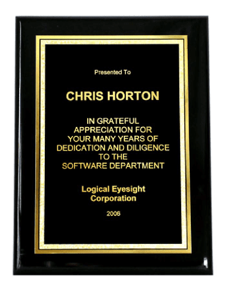 Excellent product, beautifully done and quickly delivered. The web site allowed me to design the plaque like I wanted and gave me a preview. Design, production, and delivery all went without a hitch. I will continue to use Trophy Central for its reliability.