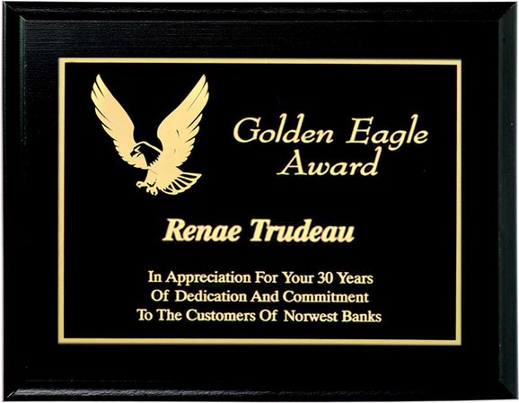 Plaque looked exactly as advertised. Great product and price. Trophy Central provides such great service, I've been using them regularly for over 2 years. They keep my logo on file. Never had a problem or glitch- in fact they've caught my error before!. It's great to have such a professional partner.