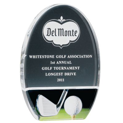 This Acrylic Golf Trophy is available in 2 Sizes. Small: 7" H x 5"W Large: 8"H x 5.75"W. Price includes personalized engraving. Great for golf season events and tournament recognition. Ships from: Mount Vernon, New York. SKU: ac26x-cm.