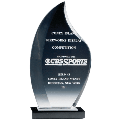 This Acrylic Flame Trophy features a Reflective Black Marble Base and includes free personalized engraving. Measures 11"H x 5.75"W. Processing time: approximately 4-6 business days. Ships from: Mount Vernon, New York. SKU: ac270-cm.