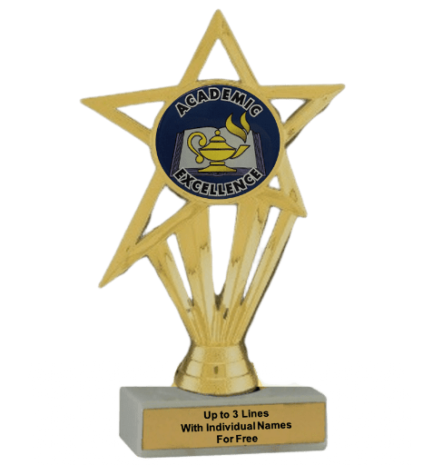 Our economy insert trophy features a real white marble base with a gold insert holder and 2" Academic Excellence insert. Measures approximately 6 7/8" - 7 1/8" tall. Add up to three lines of text personalized engraving for free, including individual names! Outstanding for acknowledging academic excellence and achievement. Ships from: Marquette, Michigan. SKU: academic-e-part-i-tc.
