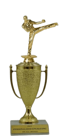 Recognize a special achievement with our classic achievement cup trophy. Features a gold cup, choice of figure and slant-front marble base. Includes up to 3 lines of black personalized engraving on a gold flexi-plate. Quantity discounts available. Use our Personalization Wizard to easily enter your engraving. A wonderful choice for rewarding excellence and victory. Ships from: Marquette, Michigan. SKU: achivement-trophy-cup-tc.