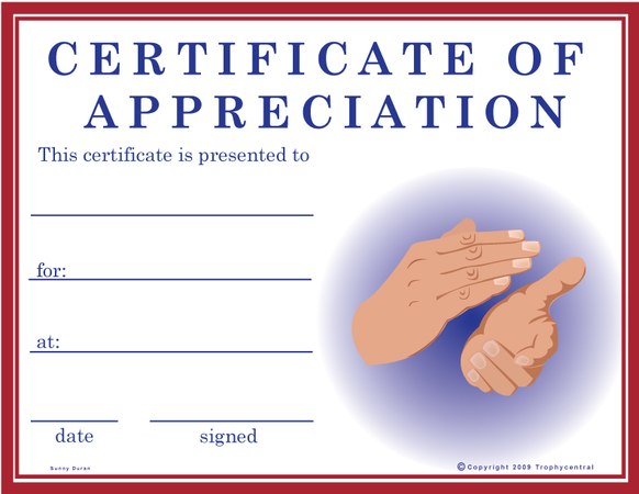 Appreciation Award Certificate - Free Template (Item #: APPRECIATION-tc)