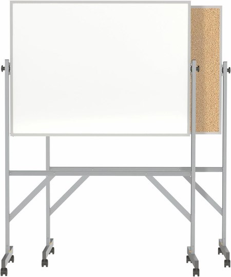 Constructed for strength and durability, Ghent's Reversible Boards are a versatile mobile communication tool. The reversing mechanism is specifically designed to make flipping to the other side quick and easy. The reversible board is multi-functioning, offering both a durable whiteboard and a self-healing corkboard. Strong steel lock clamps adjust to secure the board in any position. Each portable unit features a full-length accessory tray for convenience and includes 4 markers and 1 eraser. These boards are fully mobile with added bracing on the legs for stability and security. The aluminum frame series includes 4 durable casters (2 locking wheels) as standard. Ships to you in Ghent's worry-free packaging, designed specifically for shipping whiteboards. Ghent's reversible board carries a 10-year warranty and is made in the USA. SKU: armk34-GT.