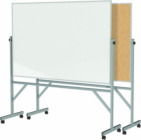 Constructed for strength and durability, Ghent's Reversible Boards are a versatile mobile communication tool. The reversing mechanism is specifically designed to make flipping to the other side quick and easy. The reversible board is multi-functioning, offering both a durable whiteboard and a self-healing corkboard. Strong steel lock clamps adjust to secure the board in any position. Each portable unit features a full-length accessory tray for convenience and includes 4 markers and 1 eraser. These boards are fully mobile with added bracing on the legs for stability and security. The aluminum frame series includes 4 durable casters (2 locking wheels) as standard. Ships to you in Ghent's worry-free packaging, designed specifically for shipping whiteboards. Ghent's reversible board carries a 10-year warranty and is made in the USA. Ships from: Lebanon, Ohio. SKU: armk46-gt.