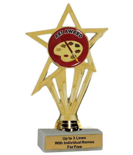 Our economy insert trophy features a real white marble base with a gold insert holder and 2" Art insert. Measures approximately 6 7/8"-7 1/8" tall. Up to three text personalized engraving free, including individual names! Ships from: Marquette, Michigan. SKU: art-e-part-i-tc.