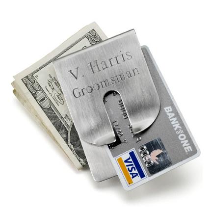 This personalized money clip is a masterpiece of balance and symmetry. Help him keep his bills and credit cards safe with this stylish accessory. Measures 5 1/4" x 3 7/8". Specify up to 2 lines of personalized engraving, 15 characters and spaces per line. Makes a great groomsmen gift. SKU: gc266-jds.