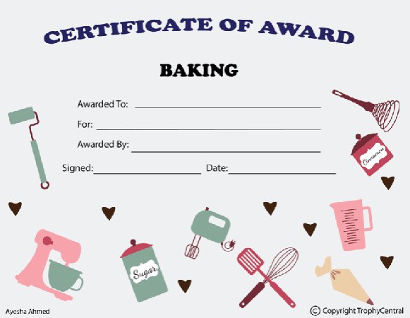 This is a baking template designed exclusively for TrophyCentral. It is a perfect way for you to recognize talented bakers! Our free certificates were designed to be printable and use less ink to save you money. Simply press the View Now Button and then right click on the image and select Save File to download it. Baking templates measure 8 1/2" x 11". Outstanding for acknowledging achievement and success. SKU: baking-521-tc.