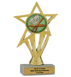 Our economy insert trophy features a real white marble base with a gold insert holder and 2" Baking insert. Measures approximately 6 7/8" - 7 1/8" tall. Up to three text personalized engraving free, including individual names! Magnificent for honoring excellence and victory. Ships from: Marquette, Michigan. SKU: baking-e-part-i-tc.
