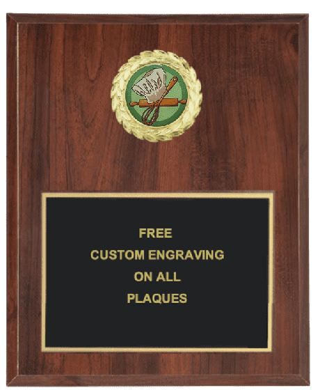 These Baking insert plaques feature a beautiful wood finish with a colorful 2 inch Epoxy dome insert. Select plaque size (7x9 or 8x10), finish (Cherry or Black) and orientation (Vertical or Horizontal) below. Price includes free text personalized engraving! Logo personalized engraving is optional. Ships from: Marquette, Michigan. SKU: baking-plaque-i-tc.
