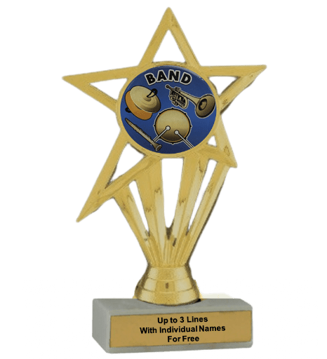 Our economy insert trophy features a real white marble base with a gold insert holder and 2" Band insert. Measures approximately 6 7/8" - 7 1/8" tall. Add up to three lines of text personalized engraving for free, including individual names! A great choice for acknowledging excellence and victory. Ships from: Marquette, Michigan. SKU: band-e-part-i-tc.