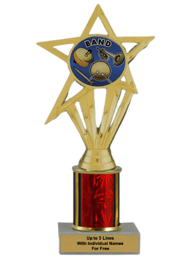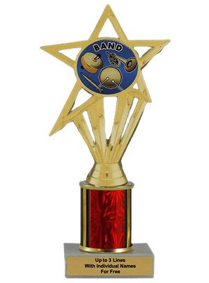 Our economy insert trophy features a real marble base, a 2-inch insert and up to 3 lines of free personalized engraving. Choice of 4 sizes and many column colors. Add up to three lines of text personalized engraving for free, including individual names! Topper: Band Insert. Ships from: Marquette, Michigan. SKU: band-e-single-i-tc.