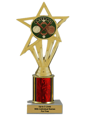 Our economy insert trophy features a real marble base, a 2-inch insert and up to 3 lines of free personalized engraving. Choice of 4 sizes and many column colors. Add up to three lines of text personalized engraving for free, including individual names! Topper: Baseball Insert. Perfect for baseball season tournaments and championship games. Ships from: Marquette, Michigan. SKU: baseball-e-single-i-tc.