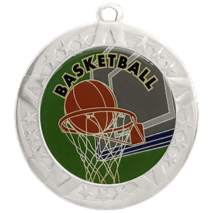 These Basketball insert medals feature a 2 3/4 inch silver frame with a colorful 2 inch Epoxy dome subject decal. Each medal also includes a red, white and blue neck ribbon. Optional personalization on back. Ideal for basketball season competitions and playoff celebrations. Ships from: Marquette, Michigan. SKU: basketball-jisf-tc.