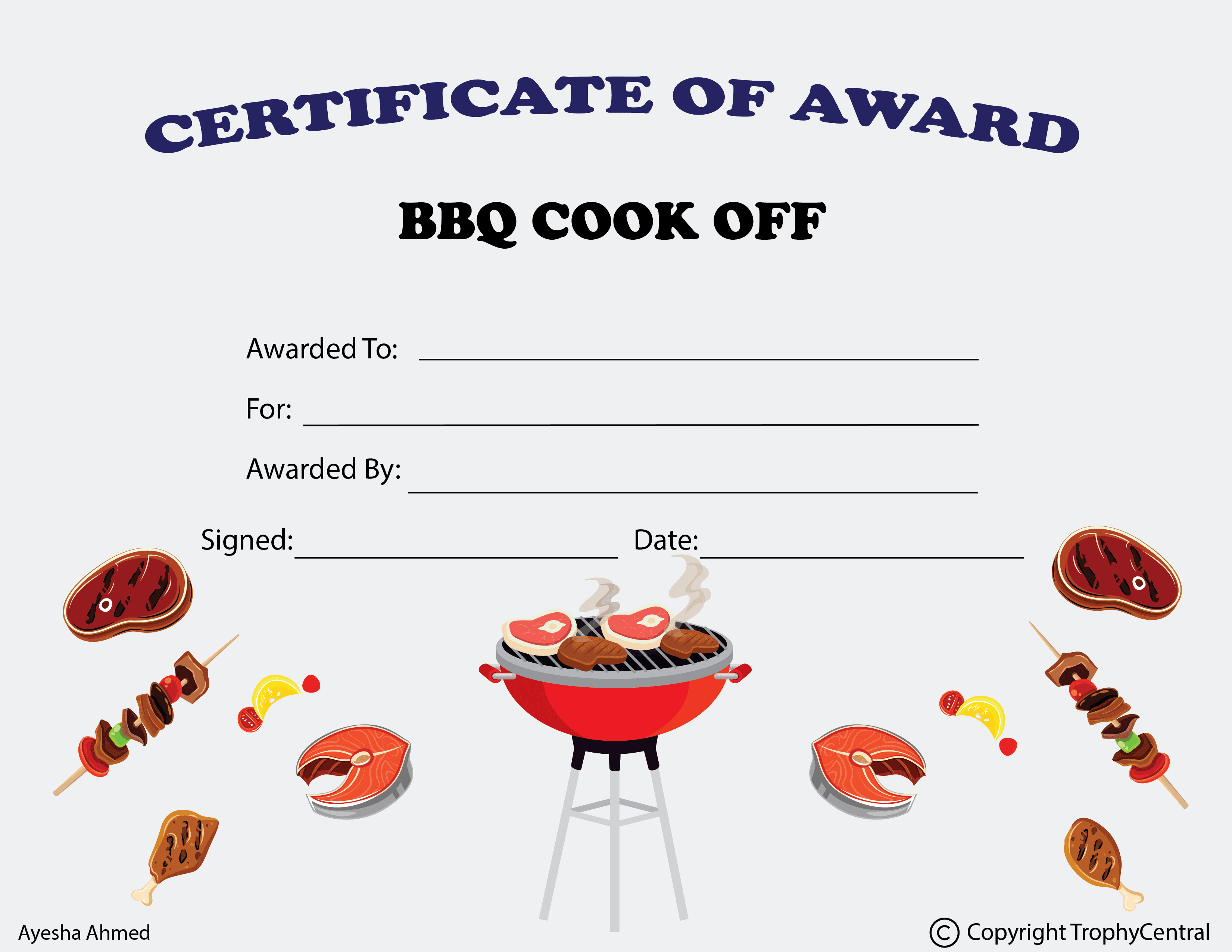 BBQ Cook-Off Award Certificate - Free Template (Item #: bbq-cook-off-521-tc)