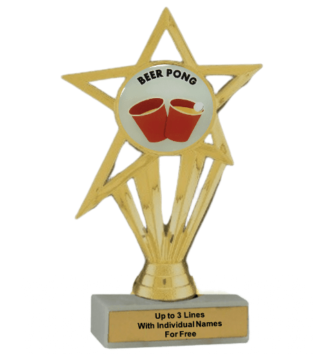 Our economy insert trophy features a real white marble base with a gold insert holder and 2" Beer Pong insert. Measures approximately 6 7/8" - 7 1/8" tall. Add up to three lines of text personalized engraving for free, including individual names! Magnificent for recognizing excellence and victory. Ships from: Marquette, Michigan. SKU: beer-pong-e-part-i-tc.