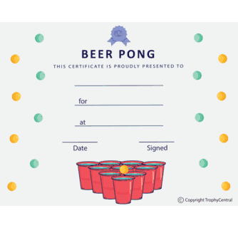 This Beer Pong template was designed exclusively for Trophy Central. Best of all, it's free! Our award certificates & templates were designed to be printable and use less ink to save you money. Simply press the View Now Button and then right click on the image and select Save File to download it. Templates measure 8 1/2" x 11". Outstanding for acknowledging achievement and success. SKU: beer-pong-tc.