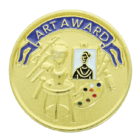 These enameled Art Award pins are high-quality and feature a clutch-pin back for easy & safe attachment to clothing. Art Award pins typically ship in just 1-2 business days from New York. Ships from: Mount Vernon, New York. SKU: br475-cm.