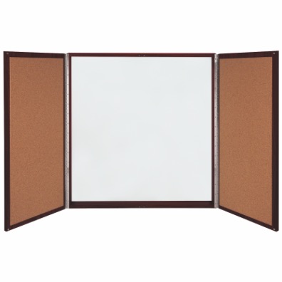 Magnetic Porcelain Whiteboard Cabinet with Cork Interior Doors, 4'H x 4'W, Mahogany (Item #: c1-44m-GT)