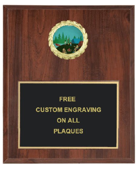 These Camp / Campers insert plaques feature a beautiful wood finish with a colorful 2 inch Epoxy dome insert. Select plaque size (7x9 or 8x10), finish (Cherry or Black) and orientation (Vertical or Horizontal) below. Price includes free text personalized engraving! Logo personalized engraving is optional. Ships from: Marquette, Michigan. SKU: campers-plaque-i-tc.