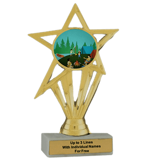 Our economy insert trophy features a real white marble base with a gold insert holder and 2" Camp / Camping insert. Measures approximately 6 7/8" - 7 1/8" tall. Add up to three lines of text personalized engraving for free, including individual names! Outstanding for recognizing camping skills and dedication. Ships from: Marquette, Michigan. SKU: camping-e-part-i-tc.