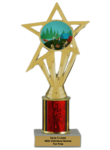 Our economy insert trophy features a real marble base, a 2-inch insert and up to 3 lines of free personalized engraving. Choice of 4 sizes and many column colors. Add up to three lines of text personalized engraving for free, including individual names! Topper: Camp / Camping Insert. Outstanding for rewarding camping skills and dedication. Ships from: Marquette, Michigan. SKU: camping-e-single-i-tc.
