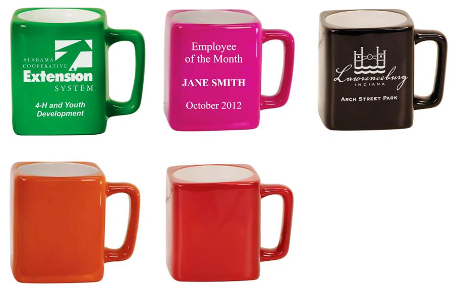 8 oz. Ceramic Square LazerMug in your choice of color. Outside is square (square edges are not perfectly flat, slight contour). Inside of mug is cylindrical. 3 7/8" tall x 3 1/4" wide **Sizes can vary up to 3/16" ** The handle is 3" high and stick out 1 3/16" from cup. Glazed White then painted. Microwave and dishwasher safe. **No two ceramic mugs are identical in size/style because of the molding process** personalized engraving area: 2 3/4" x 3 3/4" Front and Back. Front will always have handle on the right as shown in photo. Ships from: Marquette, Michigan. SKU: lmgxx-tc.